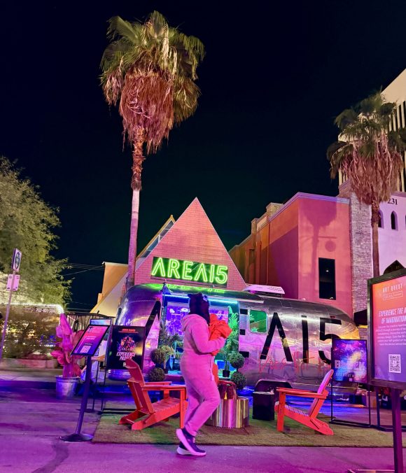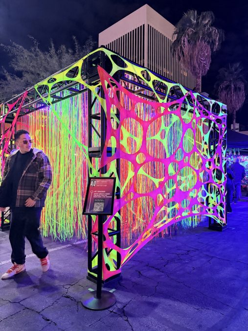 But music isn’t the only thing worth checking out. Area15 has a really sick pop-up near the DLVEC stage, featuring beautifully weird, neon-lit art installations and a John Wick mini experience. Also inside DLVEC, is the Neon Market where artists, toymakers, and boutiques showed off their products for festival goers to shop.
