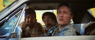 Easy Does It is an interesting film. Set in the 70s, the film uses film grain effects to give it an authentic look. It has overblown colors and an old film grain to make the movie seem like it is from the 1970s. It also occasionally will splice in some home movie style documentary footage and commentary, which is a nice touch to help establish the time frame. This gives the film an authentic look that instantly differentiates it from other movies. The movie is mostly about Jack and Scottie, and shortly after it starts, Collin (Dumesnil). Jack and Scottie have a really good camaraderie and very different characters. They complement each other well and have a funny, slightly crazy friendship that works for this road trip film. Collin is more of a straight edge person, but adds something to the overall group. It is a really fun dynamic between all the characters and their experiences and growth on the road trip are entertaining to watch. Watching each character grow and progress during this ordeal makes the whole film better as a result. And the movie also has Linda Hamilton as a crime lord, a role that I’m sure you’ve never seen her in and one that she completely transforms for. This movie is all about its characters and there are strong and quirky personalities going through all sorts of experiences and ordeals that you won’t be hurting for fun.