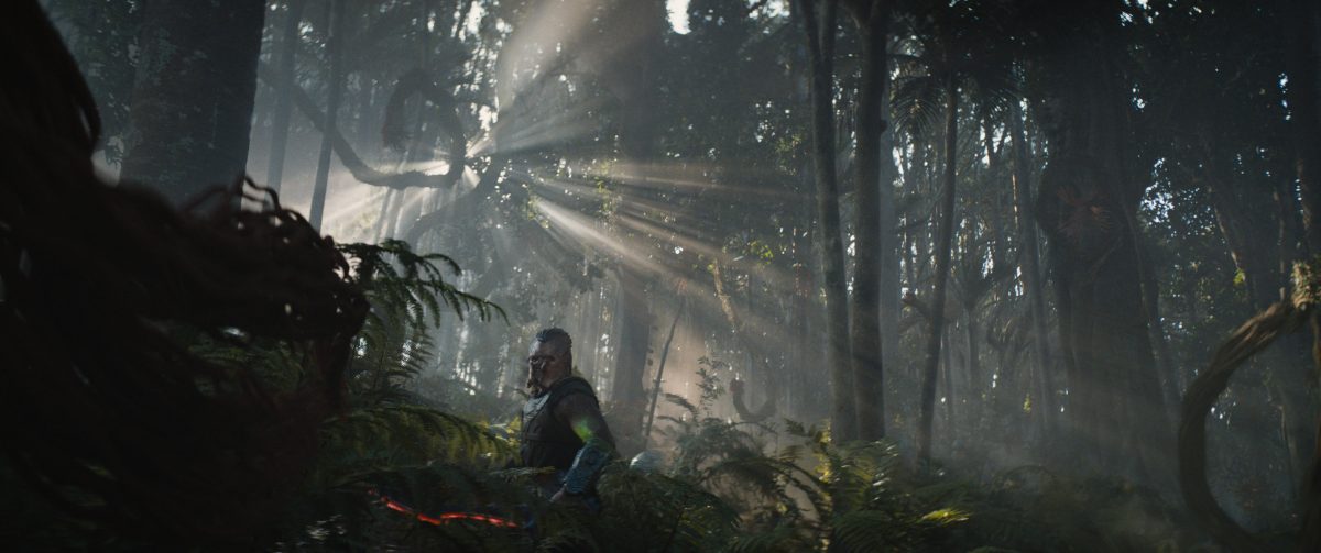 The score, composed by Sarah Schachner (Assassin’s Creed: Valhalla) and Benjamin Wallfisch (Blade Runner 2049), merges industrial percussion with symphonic emotion. Their work captures both the tribal pulse of the hunt and the synthetic heartbeat of Thia’s evolution. It’s immersive and deeply atmospheric, heightening every emotional and physical beat.