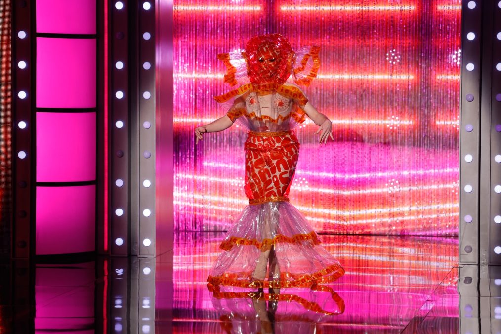Category is: I Can See Right Through Ha (‘Her’ for the straights) and this was a spectacular runway, honestly. Jane Don’t’s checkered, club kid fit with a facekini is ridiculously pleasing to the eye and her best runway of the season so far. Kenya Pleaser’s Zenon-inspired, Rainbow Brite-esque outfit pops on the runway and looks gorgeous against her skin.