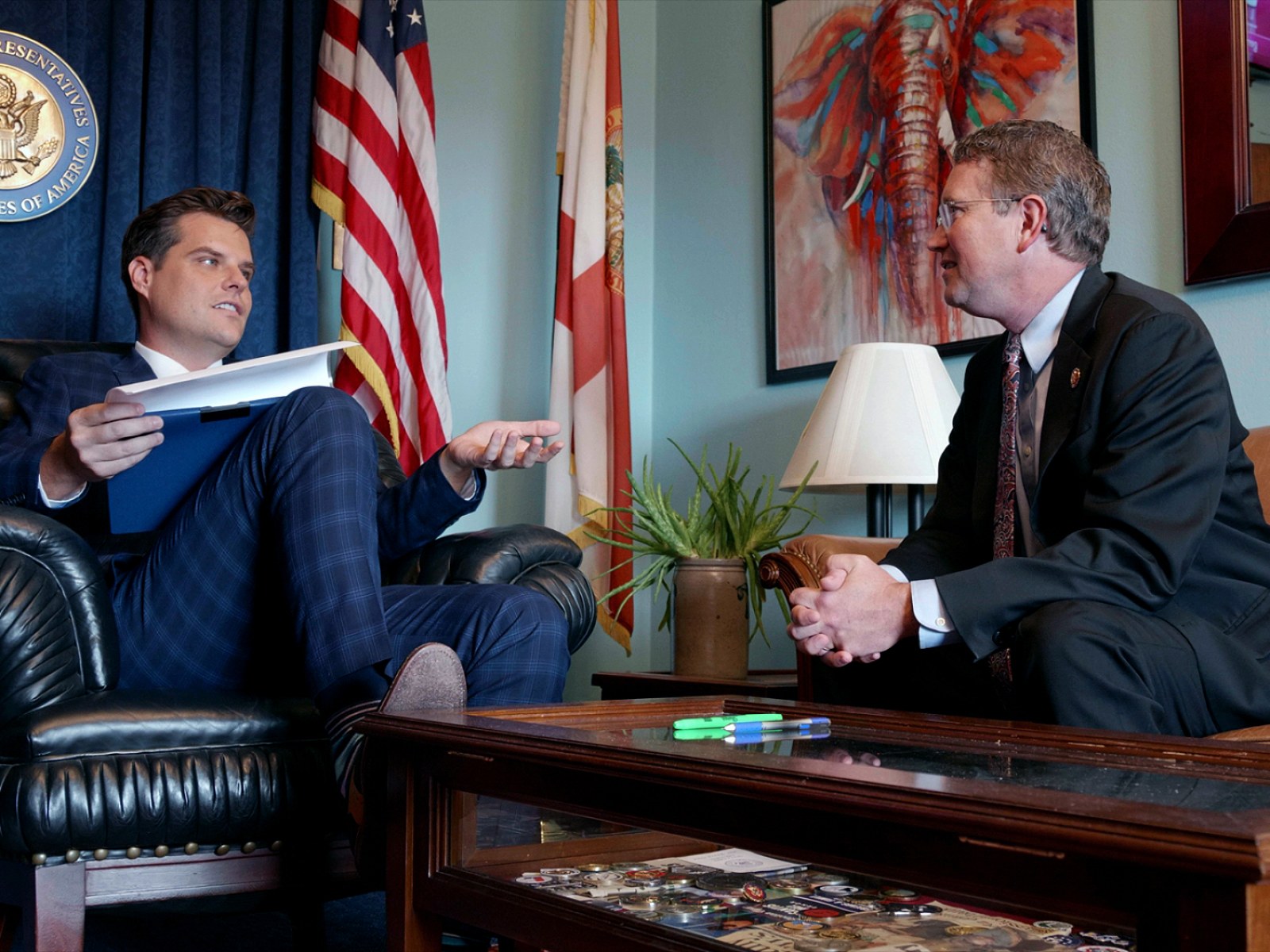 The Swamp is a behind-the-scenes documentary following members of the rebellious Freedom Caucus as they navigate friends and foes from both parties. The documentary provides a look behind the curtain of Washington politics by following three renegade Republican Congressmen as they bring libertarian and conservative zeal to champion the President’s call to “drain the swamp,” while facing demands to raise money for their re-election campaigns and the Republican national party. Directors Daniel DiMauro and Morgan Pehme (“Get Me Roger Stone”) track Republican Congressmen Matt Gaetz (R-FL), Thomas Massie (R-KY), and Ken Buck (R-CO) over the course of a pivotal year in politics, demonstrating the breadth and grip of a system that rewards fundraising above all else, plaguing Congress on both sides of the aisle. With unique behind-the-scenes access to the inner workings of the House of Representatives amid major breaking news events, including the Mueller hearing and President Donald Trump’s impeachment proceedings, the film presents a revealing look at the core democratic institution of American government.