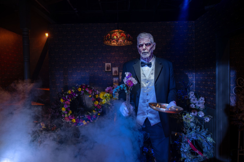 Estate of Evil is the signature experience of Dark Nights 2025. The gothic design, lighting, and scent work completely immerse you in the story. Each room feels unique, with careful transitions that use curtains instead of plastic dividers, giving the house a theatrical feel.