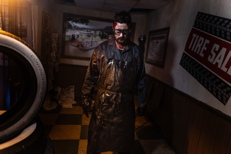 Each space inside offers something different, from the car wash area filled with lights and mist to a gas station storefront that feels like it came straight from a horror film. Every scene smells, sounds, and looks distinct, creating a strong sense of place and atmosphere.